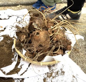 1つの親芋からたくさんの子芋。そこからたくさんの孫芋。中々見ることのできない状態のお野菜に、子ども達も興味津々でした。